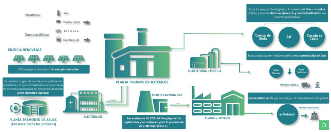 NorQuim es un Complejo Tecnológico que comenzará a construirse en Mejillones, Región de Antofagasta, con el objetivo de producir de manera local insumos estratégicos para la minería del cobre y del litio: ceniza de soda, cloruro de calcio y cal.