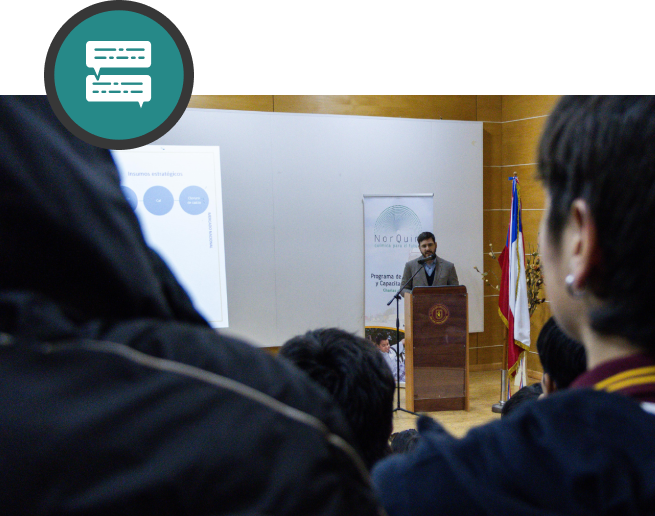 Programa de charlas vocacionales con el Liceo Juan José Latorre Benavente, para estimular y orientar a los estudiantes hacia los ámbitos del saber que requerirá el proyecto NorQuim y otros similares que se pueden desarrollar en Mejillones.